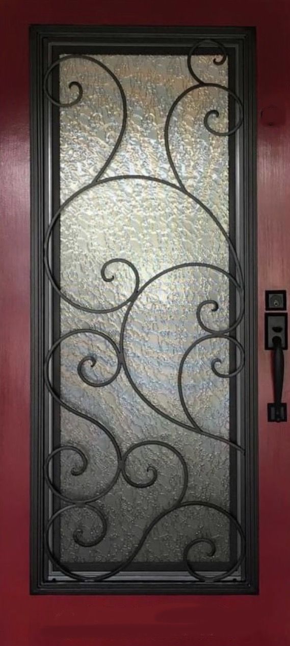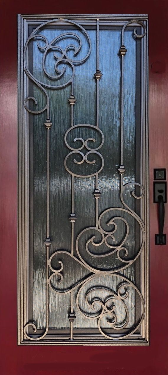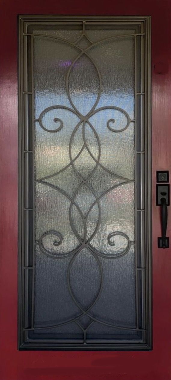 Wrought iron is skillfully incorporated into the existing doors, adding a touch of strength, elegance, and timeless charm to any entryway. The intricate and ornate designs of wrought iron evoke a sense of craftsmanship and durability, while also exuding sophistication and classic beauty. Wrought iron door inserts create a captivating visual impact, conveying a sense of grandeur, security, and refined taste, making a statement that is both bold and inviting.